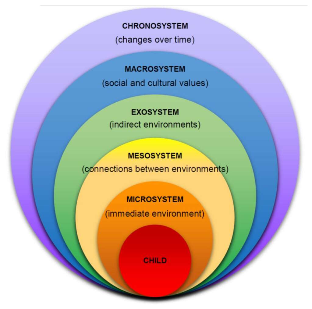 Este modelo descreve o ser humano como um ser em desenvolvimento inserido em vários sistemas interligados, desde os mais próximos e imediatos (como a relação mãe-bebé) até às estruturas sociais, políticas e culturais que moldam essas relações. A amamentação, enquanto experiência física, emocional, relacional e social, atravessa todos esses níveis.